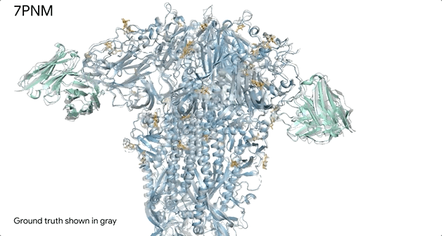 DeepMind的AlphaFold2解決了困擾生物學(xué)界50年的蛋白質(zhì)結(jié)構(gòu)預(yù)測難題,準(zhǔn)確度達(dá)到實(shí)驗(yàn)水平。AlphaFold3(2024)進(jìn)一步將預(yù)測范圍擴(kuò)展到蛋白質(zhì)與其他生物分子(DNA, RNA, 小分子配體、翻譯后修飾)的復(fù)合物結(jié)構(gòu),開啟了生物分子相互作用精準(zhǔn)預(yù)測的新時(shí)代。