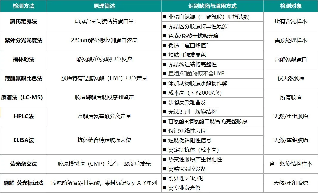 ? 國家并未強制規(guī)定重組膠原蛋白的檢測方法,企業(yè)可自由選擇“有利工具”。