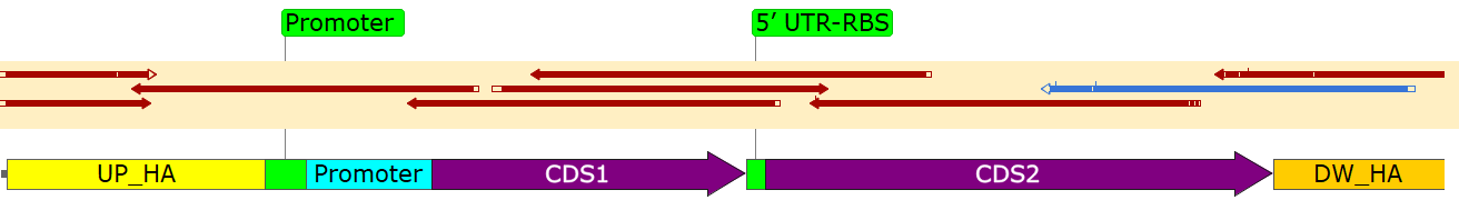 泓迅生物科技采用 CRISPR-Cpf1 系統(tǒng),在ATCC 13032基因組實(shí)現(xiàn) 2.3 kb 雙基因表達(dá)盒的高效整合(圖1)。通過改造編輯質(zhì)粒、優(yōu)化sgRNA二級結(jié)構(gòu)及HDR模板設(shè)計(jì),整合效率達(dá)78%,較傳統(tǒng)方法提升數(shù)倍。