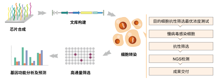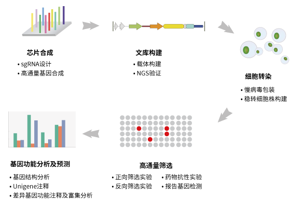 在泓迅生物,我們致力于為客戶提供CRISPR基因編輯篩選一站式篩選服務,涵蓋sgRNA序列設計、芯片合成、文庫構建、NGS驗證、病毒包裝、文庫細胞pool構建、高通量篩選和生信分析等。我們已成功交付覆蓋動物、植物和微生物在內的20多個物種的數(shù)百個高質量CRISPR sgRNA文庫,滿足不同客戶對文庫的定制化需求,提供基因功能篩選全套解決方案。