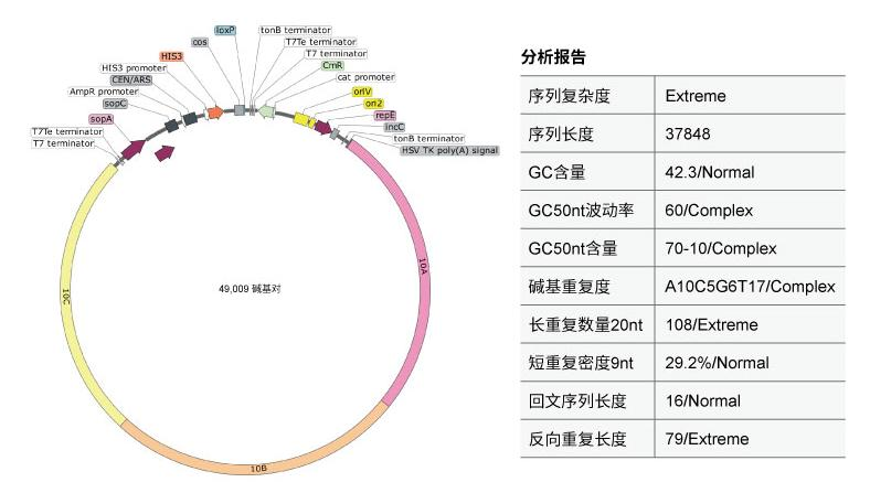 泓迅方案:AI賦能基因合成技術(shù),依托Syno? GS基因合成平臺(tái) + Complex Index(CI),通過(guò)人工智能算法,解決高難度序列(重復(fù)序列、發(fā)卡結(jié)構(gòu)、高GC)合成,對(duì)基因序列進(jìn)行深度分析和優(yōu)化,從而顯著提高合成效率和準(zhǔn)確性。