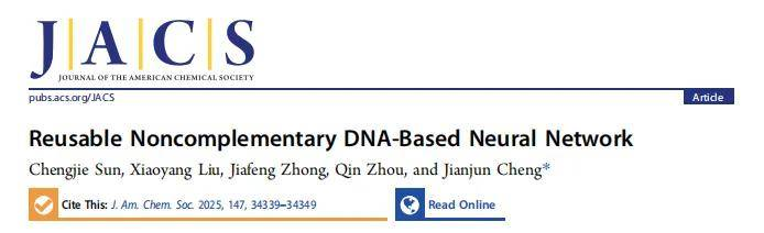 Sun C, Liu X, Zhong J, Zhou Q, Cheng J. Reusable Noncomplementary DNA-Based Neural Network. J Am Chem Soc. 2025 Sep 24;147(38):34339-34349. doi: 10.1021/jacs.5c04886.