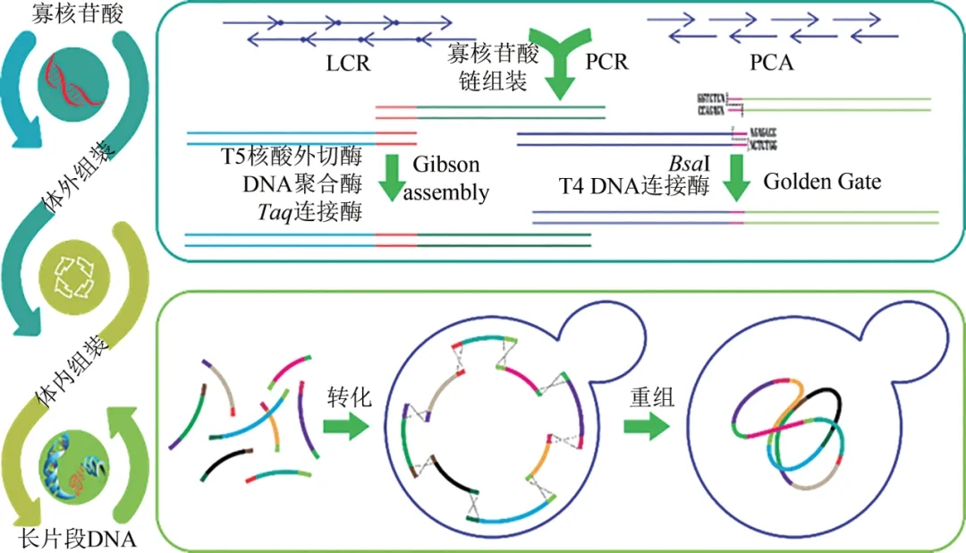 DNA片段從頭合成的長度有限,更長基因或基因組需要通過寡核苷酸片段的酶促組裝或體內組裝獲得。DNA組裝方法分為三類:酶依賴的DNA組裝、非酶依賴的DNA組裝、依賴于體內同源重組的DNA組裝。