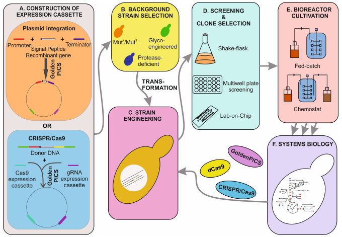 [2] De S, Mattanovich D, Ferrer P, Gasser B. Established tools and emerging trends for the production of recombinant proteins and metabolites in Pichia pastoris. Essays Biochem. 2021 Jul 26;65(2):293-307.